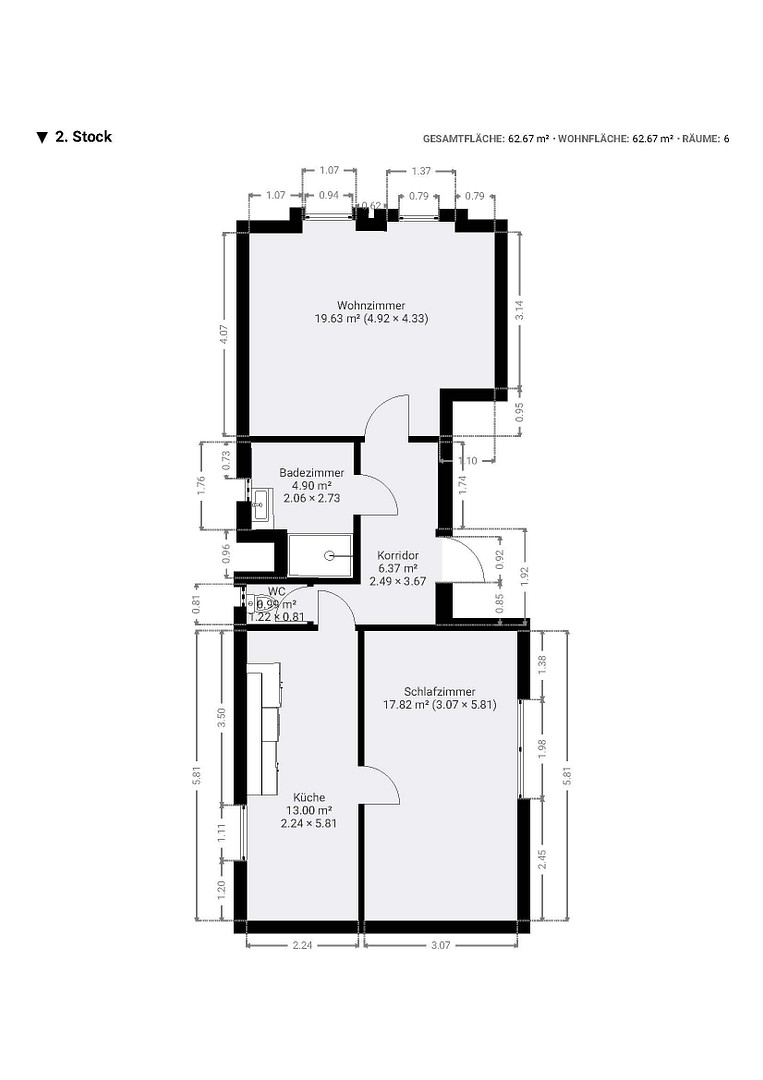 Schloßstraße 40, 74831 Gundelsheim – Baden-WürttembergThis well-designed apartment covers a total of approx. 62 m² and offers a pleasant living environment for singles, couples or working commuters. The floor plan impresses with a spacious living room, which could also be used as a bedroom, a bedroom and a spacious kitchen.