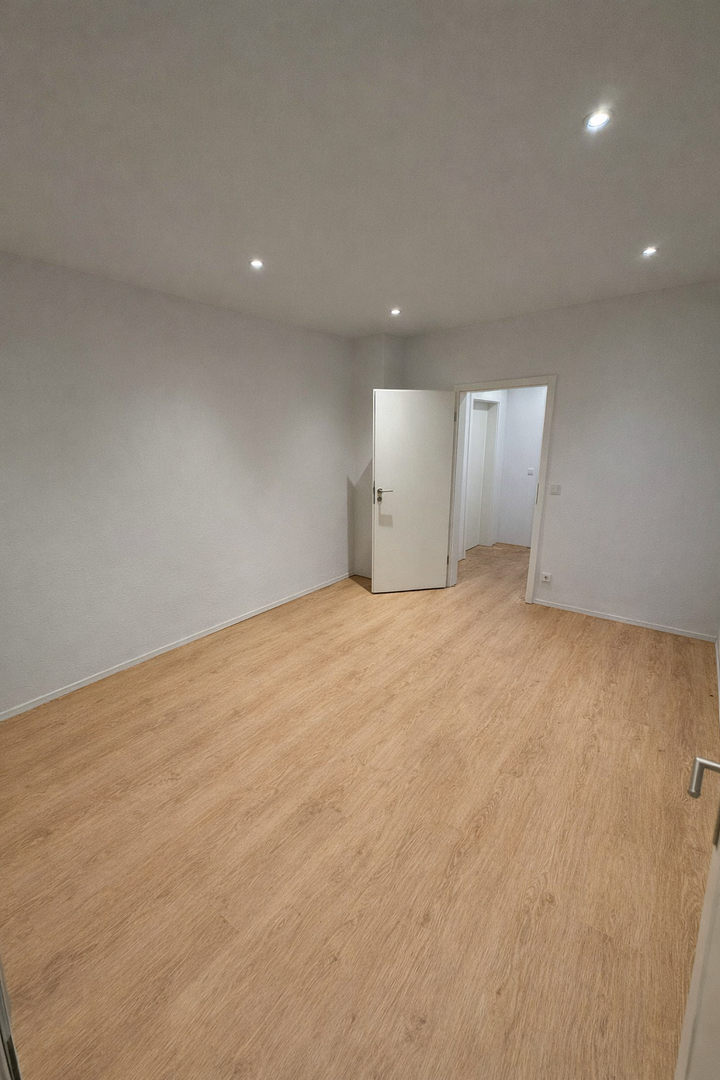 Everything is also technically up to date - including new electrics, a new heating circuit with radiators and new apartment doors. High ceilings with integrated recessed spotlights create a pleasant atmosphere and emphasize the spacious character of the rooms. The walls have been covered with woodchip wallpaper and freshly painted, the ceilings have been filled and also repainted.