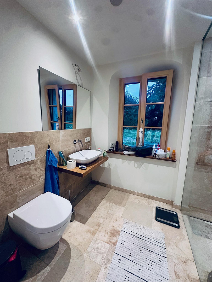 Some areas - in particular the attic, individual bathrooms and the façade - have deliberately not yet been finalized. Buyers therefore have the opportunity to purchase the house in its current state and complete the final steps to their own taste. Alternatively, a turnkey handover is also possible for an additional charge.