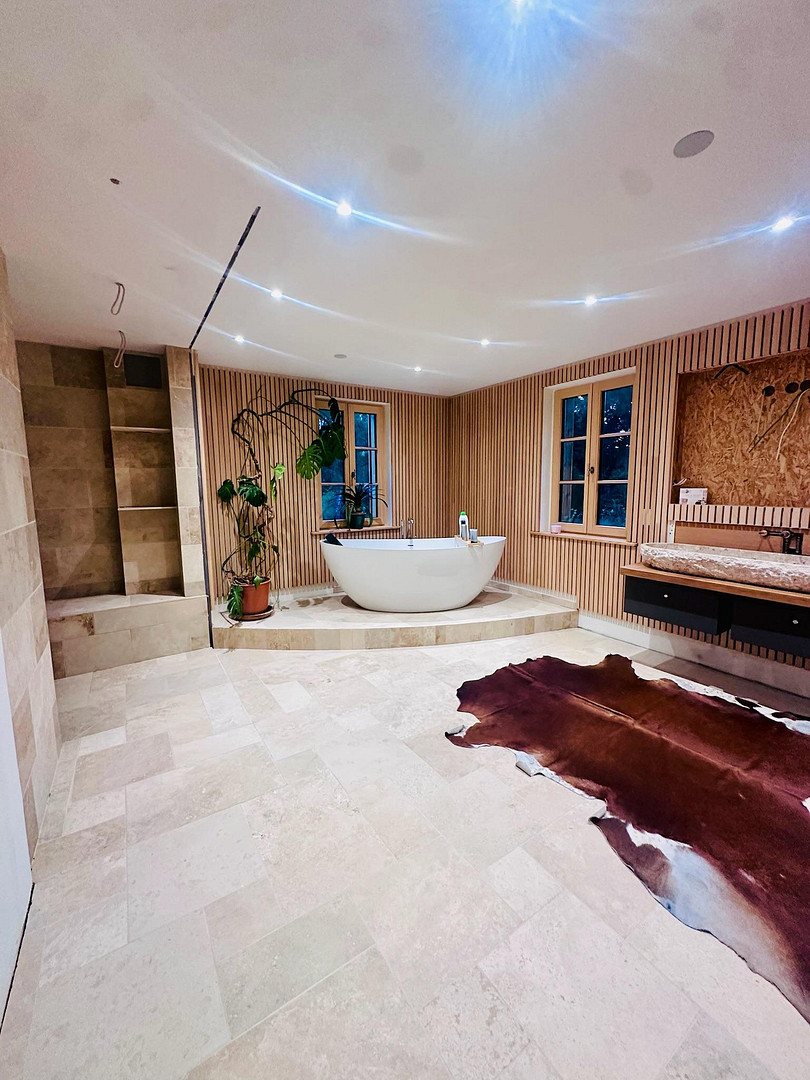 - high-quality fittings: pine floorboards, natural stone, luxurious bathrooms with free-standing bathtub & walk-in showers