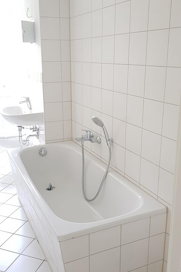 On offer is a friendly, bright and optimally laid out 2-room apartment on the first floor of a very well-kept, fully rented apartment building. The apartment has a spacious balcony with an ideal south-west orientation (width approx. 5.6 m), a modern fitted kitchen and a daylight bathroom with bathtub. A large cellar room also belongs to the apartment.