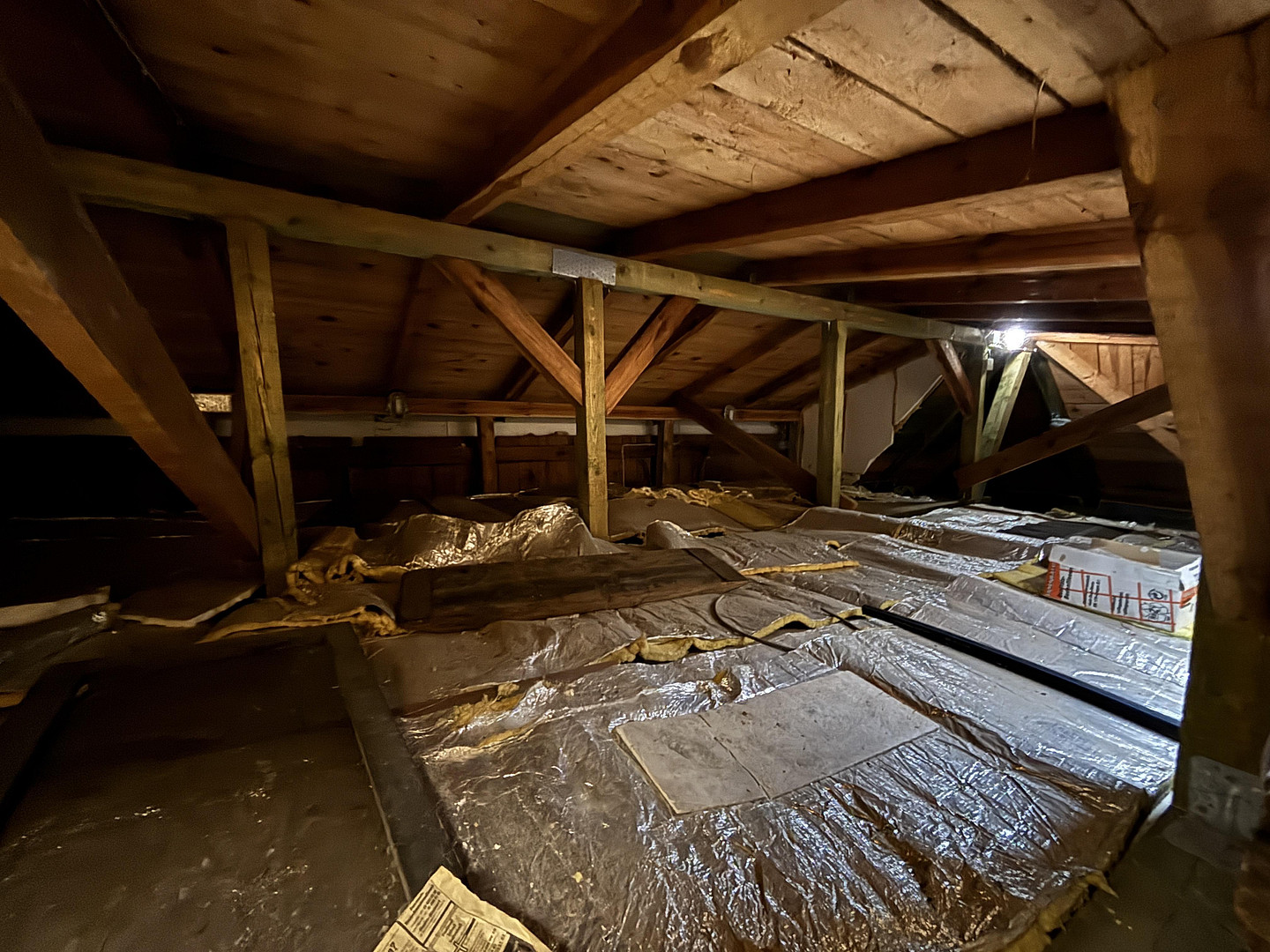 The double-glazed windows and electric blinds in the living room and bedroom ensure contemporary comfort. The attic is already insulated and offers further expansion potential (50 m²). If the upper floor is extended, 50 m² of living space can be created for two further rooms and a bathroom. A roof terrace of approx. 22 m² is also possible.