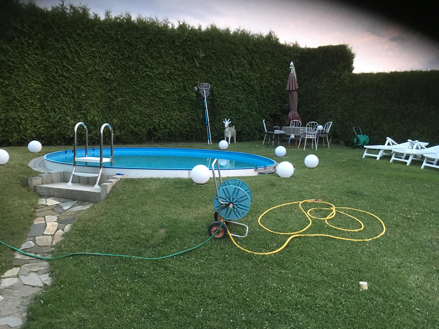 Small pond and a round pool 5.80 meters, 150 cm deep.