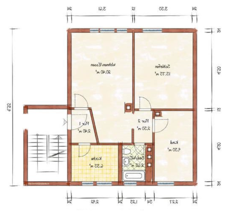 Jahnstr. 43, 95030 Hof – BayernThe bright 3-room apartment on the second floor offers around 57 square meters and has recently been completely repainted. All rooms have a friendly and well-kept appearance. The beautiful laminate flooring runs through the living and sleeping areas and creates a pleasant feeling of living. Modern plastic windows ensure peace and quiet and good insulation.