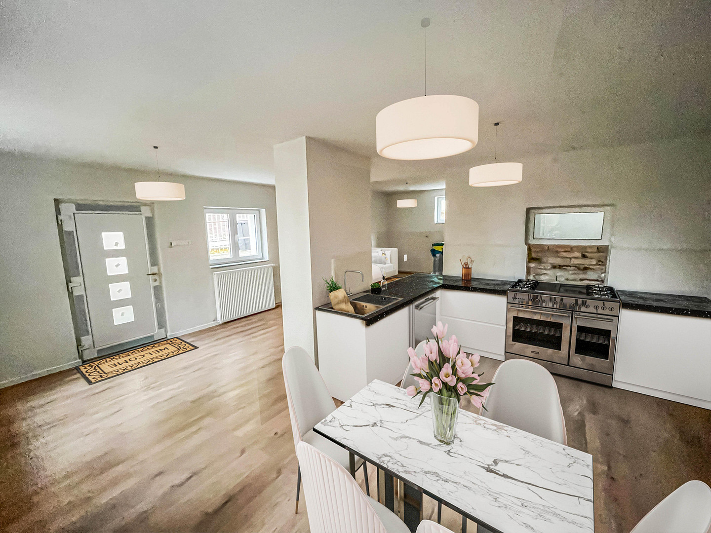 The basement WHG is without furniture, the kitchen is also only fictitious. Of course, changes can still be made here.