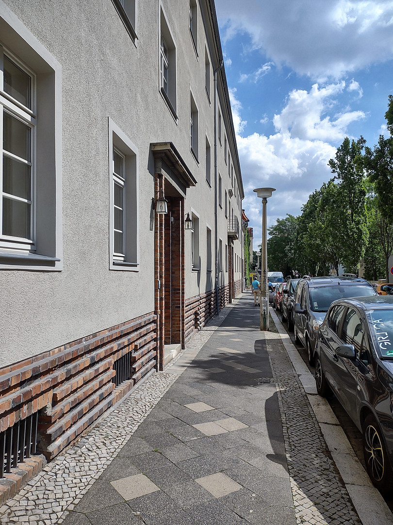 The courtyard itself is very spacious and green. There are also six parking spaces and a garage in the courtyard, which can be accessed via the gateway of house number 18. The residential buildings each have a further entrance from the courtyard.