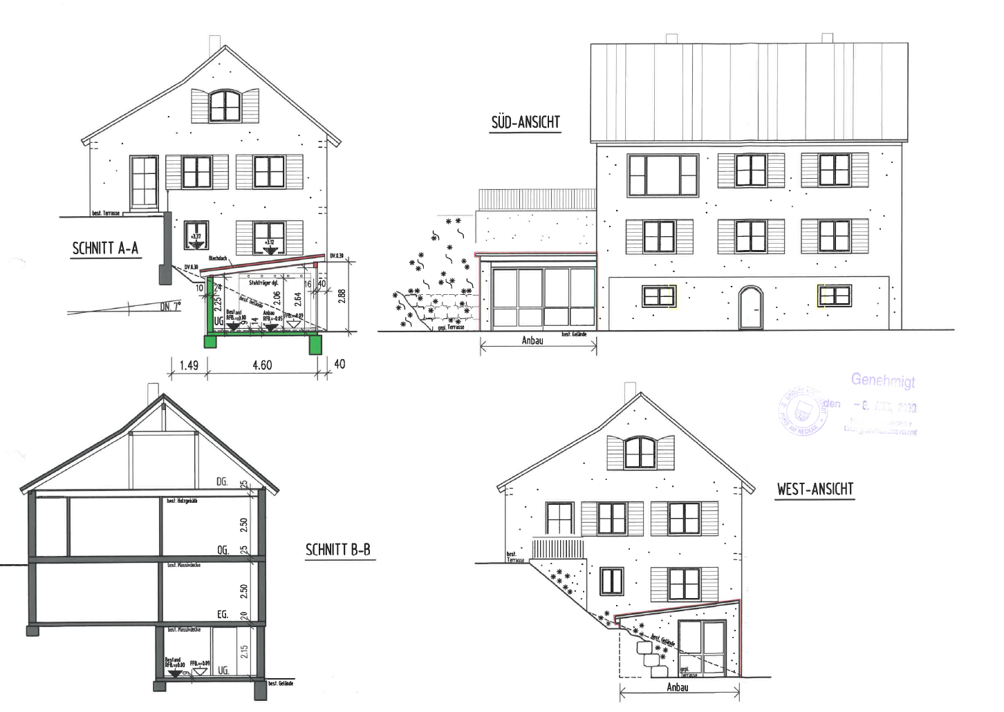 The house is situated on an attractive south-facing slope and boasts a fantastic view as well as an exceptionally large plot with potential for extension and expansion. An additional division of the plot into further building plots is entirely conceivable or possible.