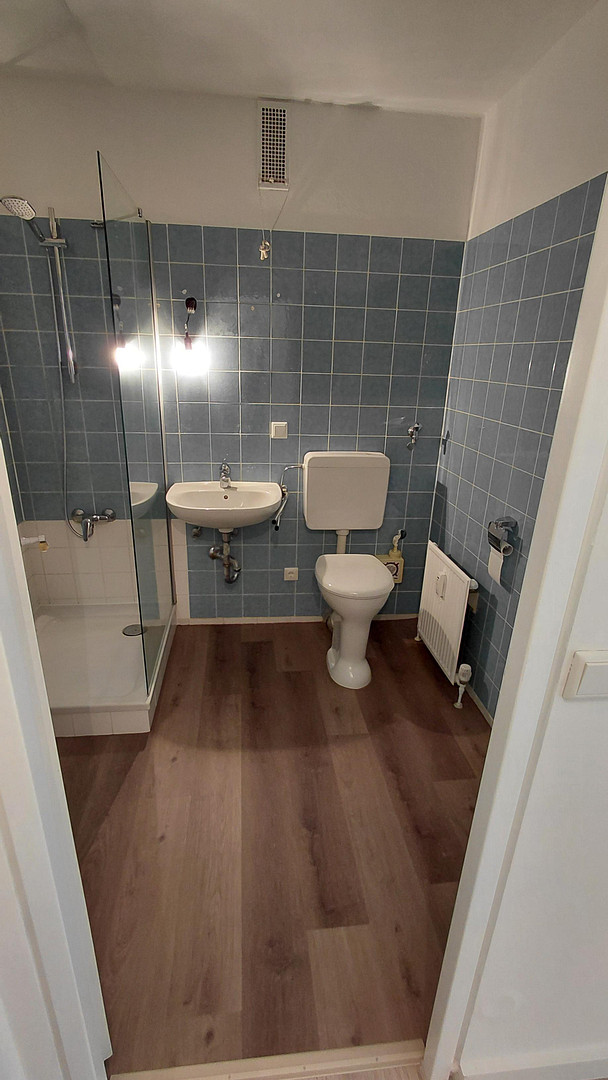 The shower room was only extended in 2017 to include a barrier-free shower. There is also space for a washing machine here. There is a wall cupboard in the hallway, which turns out to be a real space miracle.