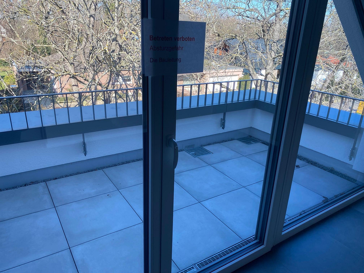 The balcony/terrace overlooks the trees of Augenbroicher Strasse and faces west ideally.
