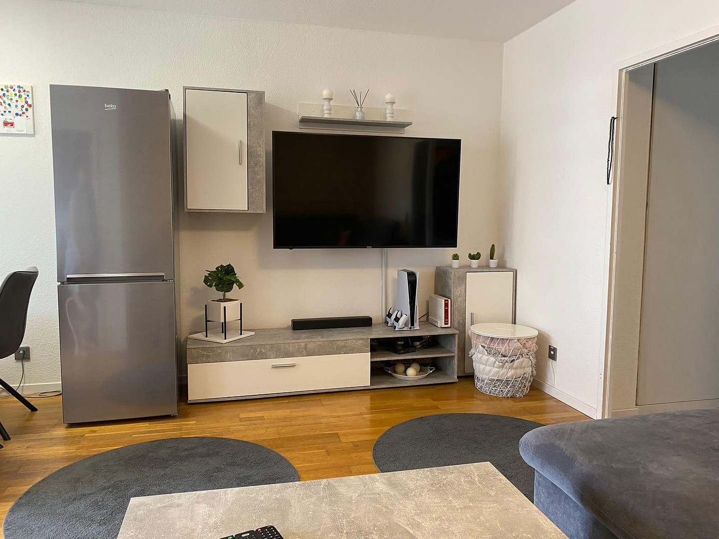68309 Mannheim Käfertal (Käfertal) – Baden-WürttembergBeautiful, bright 2 room apartment with balcony in Mannheim Käfertal. Fully furnished with everything you need to live and feel comfortable. The kitchen is fully equipped with dishes, cutlery, stove, oven, dishwasher and refrigerator. In the living room you will find a cozy