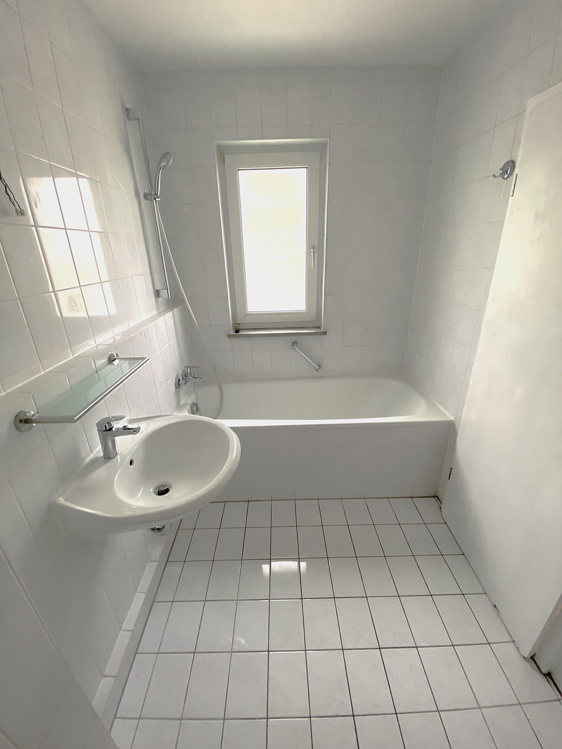 Building elements: Brick construction; white plastic windows; electric shutters; interior door elements in white; kitchen and bathroom tiled; the bathroom is equipped with bathtub and shower head with washbasin and toilet. Laminate flooring is laid in the living room, bedroom and hallway. The balcony has a wood-plastic covering (Werzalit). The apartment is supplied by the building's central gas heating system with radiators.