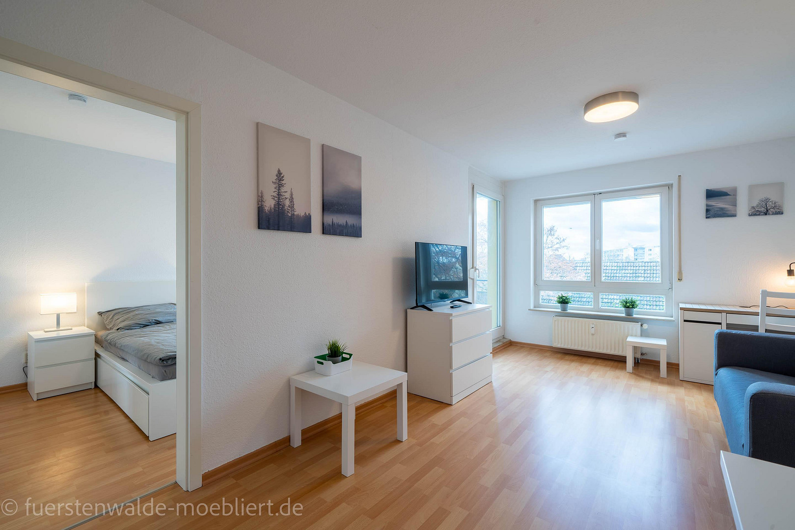 Nordstrasse 4, 15517 Fürstenwalde (Fürstenwalde/Spree) – BrandenburgTop opportunity! Available immediately! This very well-designed apartment in the heart of Fürstenwalde with bedroom, large living room, bathroom and balcony is located in a quiet area. It is bright and ideal for singles or couples. The furniture in the photos is only exemplary and not part of the rental offer. The kitchen is included in the rent (furniture as well as oven, stove and dishwasher, but without refrigerator).