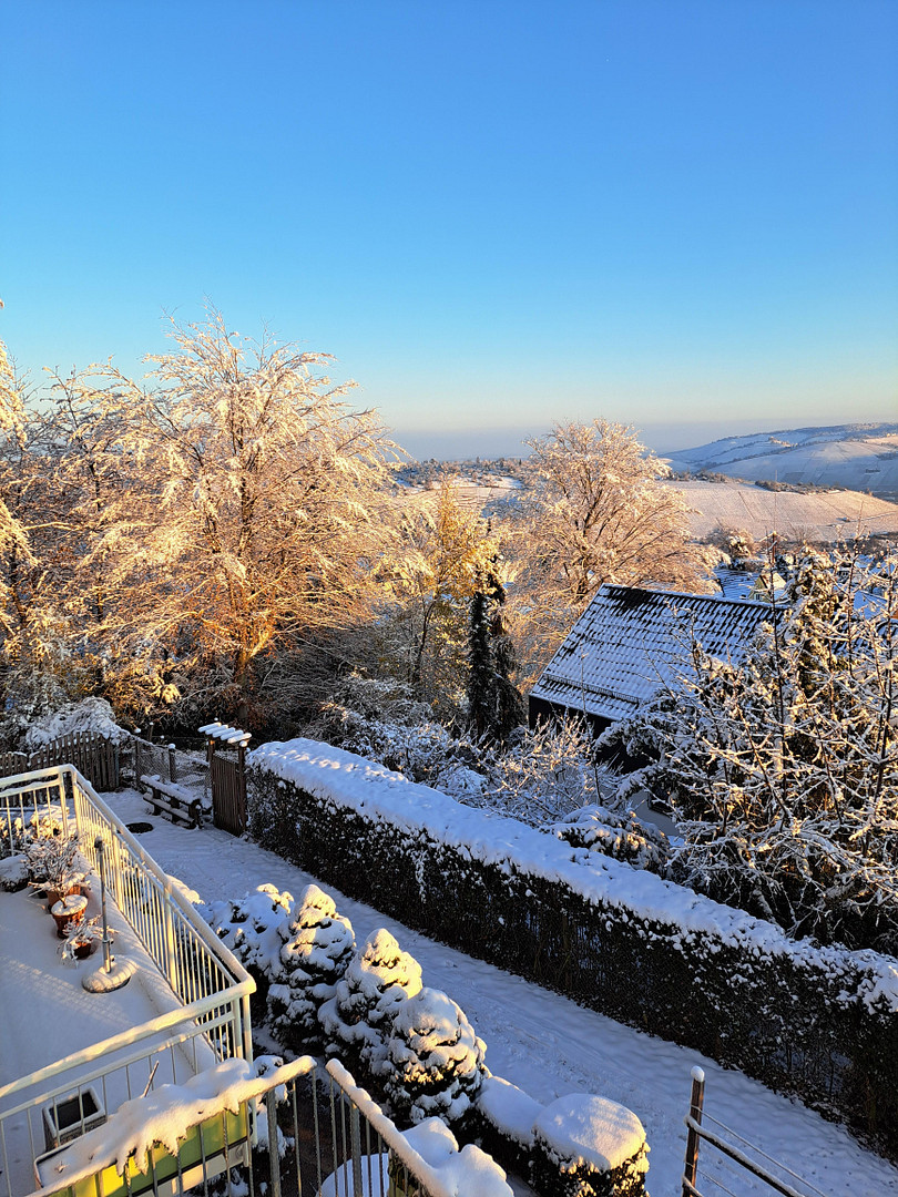 From the east-facing balconies on the ground floor and first floor, you have a view of the Rotenberg, the Schurwald heights and the forest belt towards Ostfildern-Ruit.