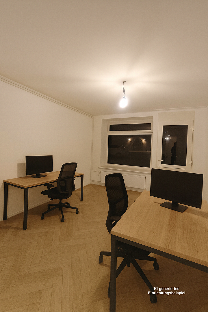 Traditional use as office, practice or service space is possible for all of the commercial spaces on offer. However, it is also conceivable to use the commercial space as a yoga or Pilates studio, exhibition space for art or as a pop-up sales area (see some AI furnishing examples in the display images).