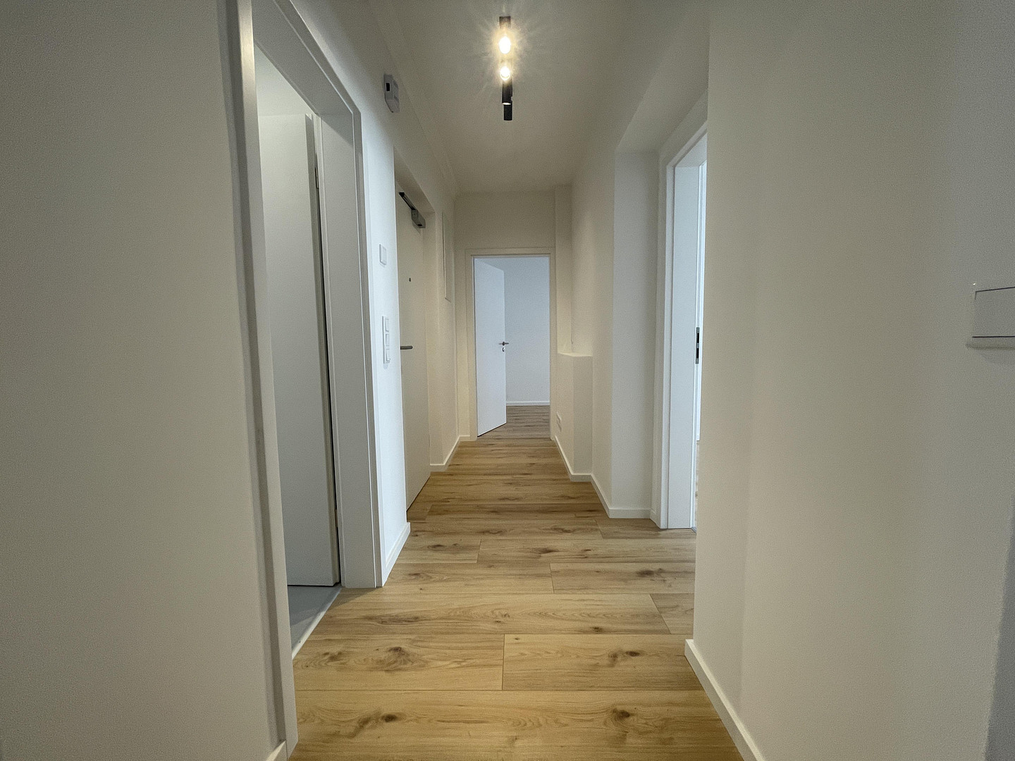 You enter the newly renovated apartment via the hallway, where you will find enough space for a wardrobe. From here, you first enter the spacious kitchen, which is equipped with a fitted kitchen.