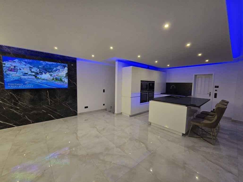 22393 Hamburg (Sasel)First occupancy after renovation. I am offering a newly renovated 4-room maisonette apartment for direct sale from the owner, without any agent fees. This high-quality maisonette apartment is located in a building with 5 units, built in 2016, and includes exclusive rights to a private terrace. The maisonette apartment, with approximately 105 square meters of living space, features 4 rooms spread over 2 floors, located on the ground floor and in the basement. It boasts a large, bright living and dining room with an open-plan kitchen featuring a large island, as well as 2 bathrooms, one of which is an en-suite. The apartment is equipped with a luxury kitchen from the Alno brand. The property features 2 bathrooms (Villeroy & Boch and Geberit), one of which is equipped with a jacuzzi. Both bathrooms have underfloor heating. Additionally, the apartment includes a washing machine and dryer, a total of 3 new Samsung televisions, and high-quality 120x60 tiles in all living areas. The property is equipped with underfloor heating in all rooms, with a control panel in each room that allows for electronic adjustment of the desired temperature. The maisonette apartment can be equipped with a video intercom system and camera surveillance. Stylish doors with a classic design, complementing the brass-finish spotlights and anthracite-colored light switches and outlets, complete the offering. It features a beautiful luxury kitchen by Alno. It also includes high-end appliances from Miele and Siemens: