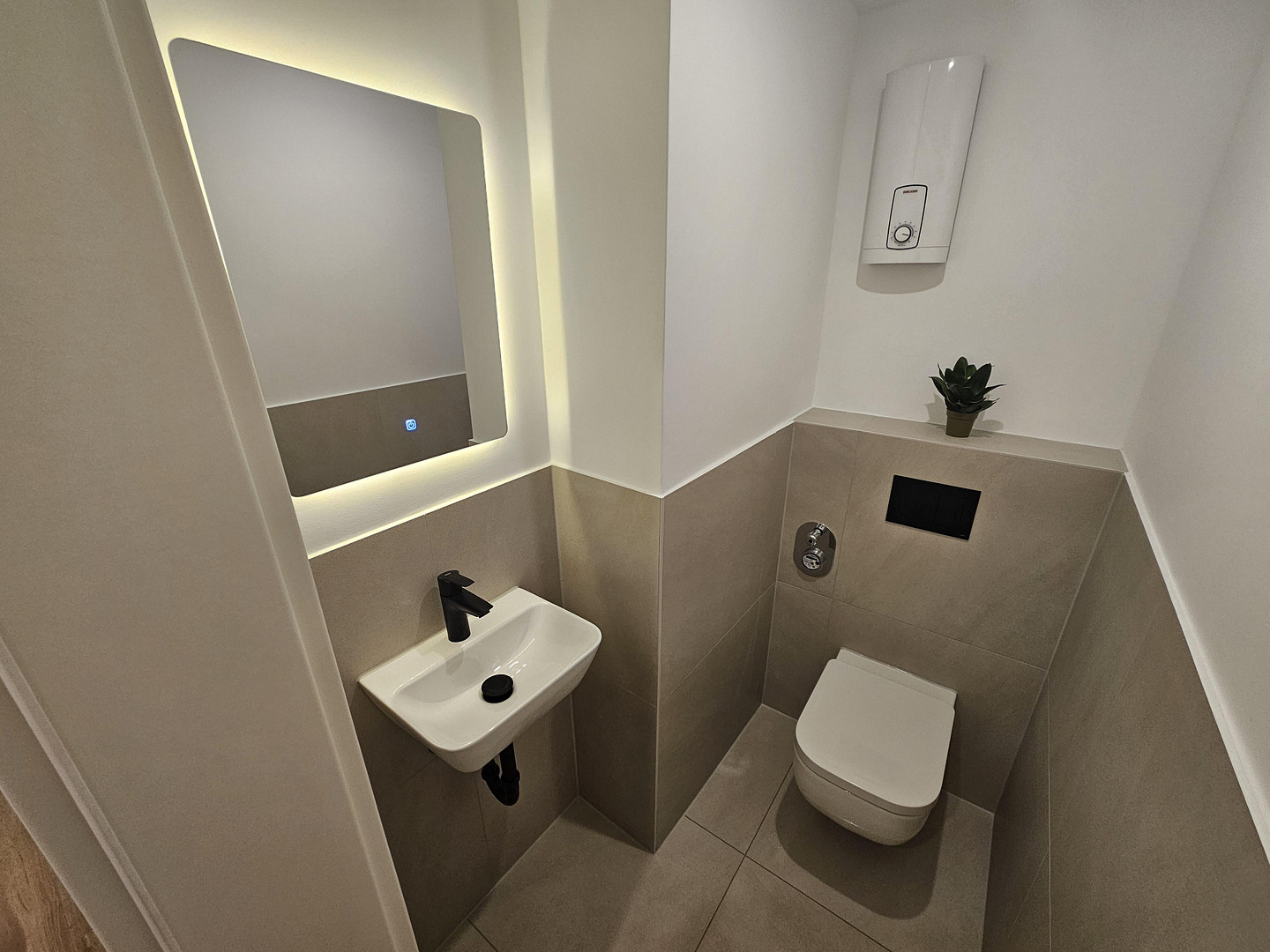 The spacious living and dining area forms the communicative center of the apartment and offers direct access to the balcony. Two further rooms are perfect as bedrooms, guest rooms or studies. The large window front provides plenty of natural light and a pleasant living atmosphere in all areas.