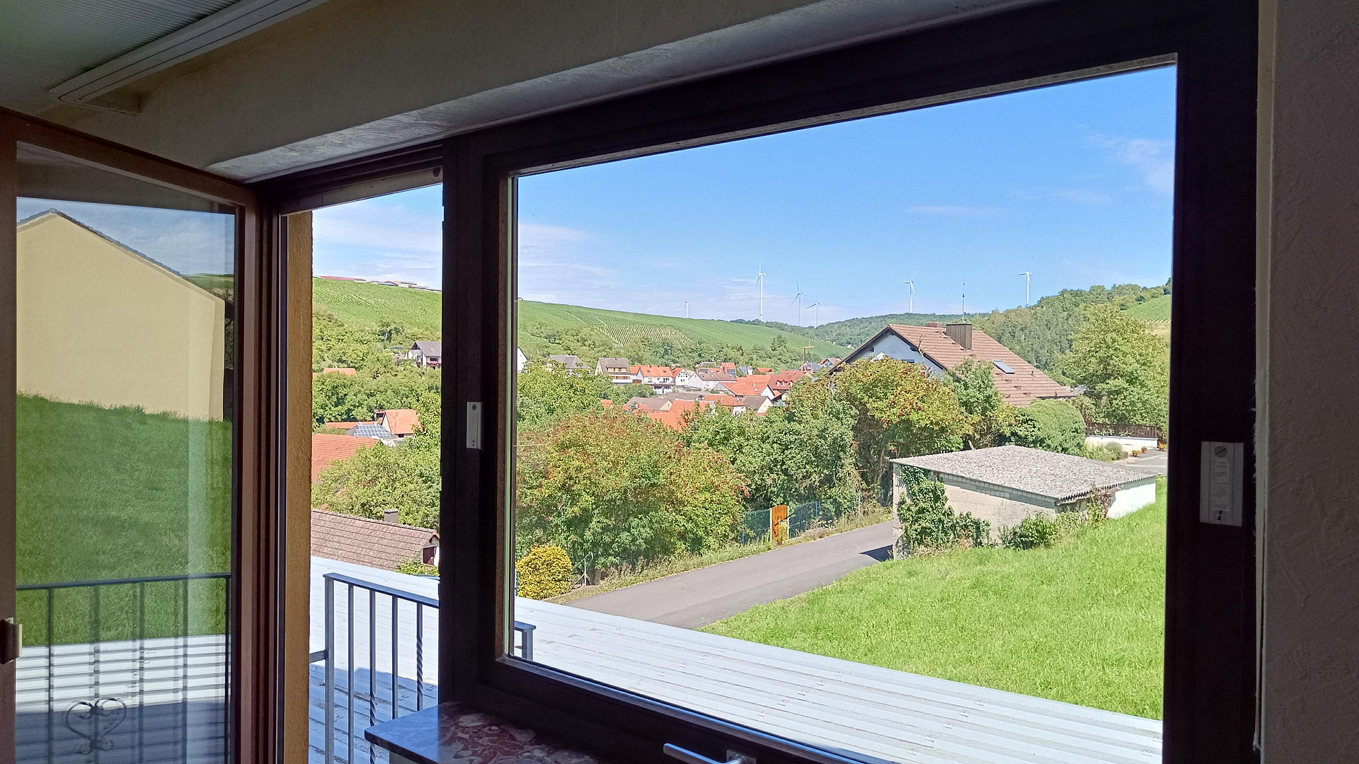 The detached house, built in 1967 in solid construction, is situated in a unique, particularly quiet cul-de-sac location with a fantastic view over the rooftops of the wine village of Retzstadt with its numerous vineyards.