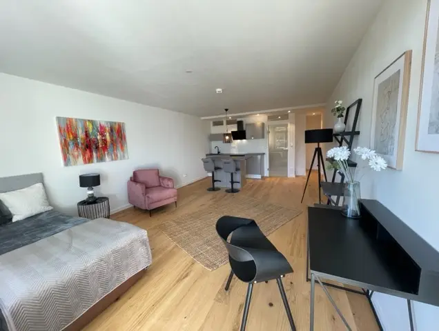 Experience urban living in this contemporary one-bedroom apartment in the heart of the city. The apartment impresses with its modern furnishings and exclusive location. The open kitchen is equipped with high-quality appliances and is perfectly integrated into the living space. Large windows offer a breathtaking view of the surrounding skyline. Supermarkets, upscale restaurants and public transportation are within easy reach, making this apartment the ideal choice for sophisticated city living.