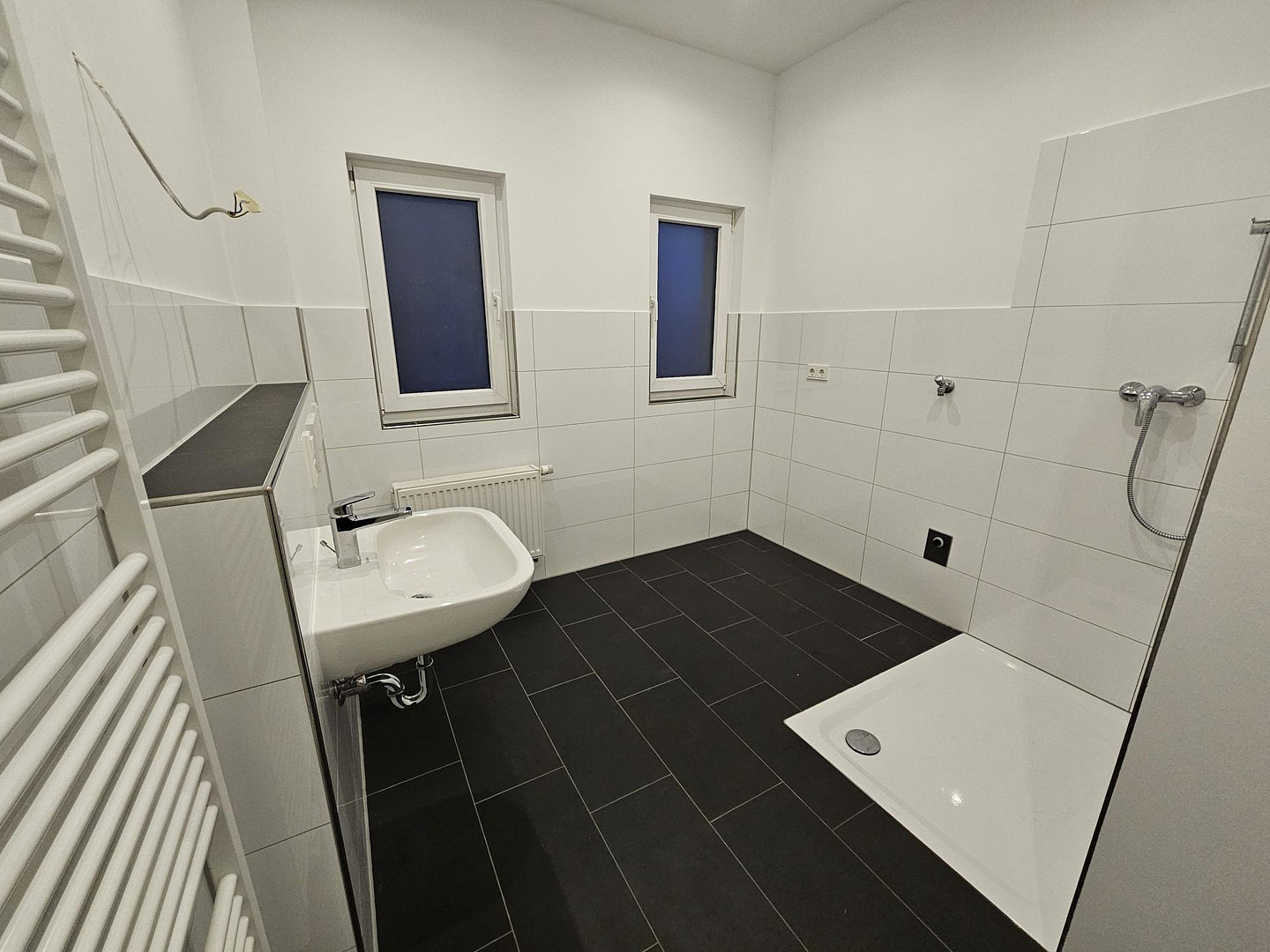 high-quality oak laminate flooring; tiles in the bathroom; towel radiator, shower, etc.; separate entrance area only for the apartment on the 1st floor; open-plan living/dining area