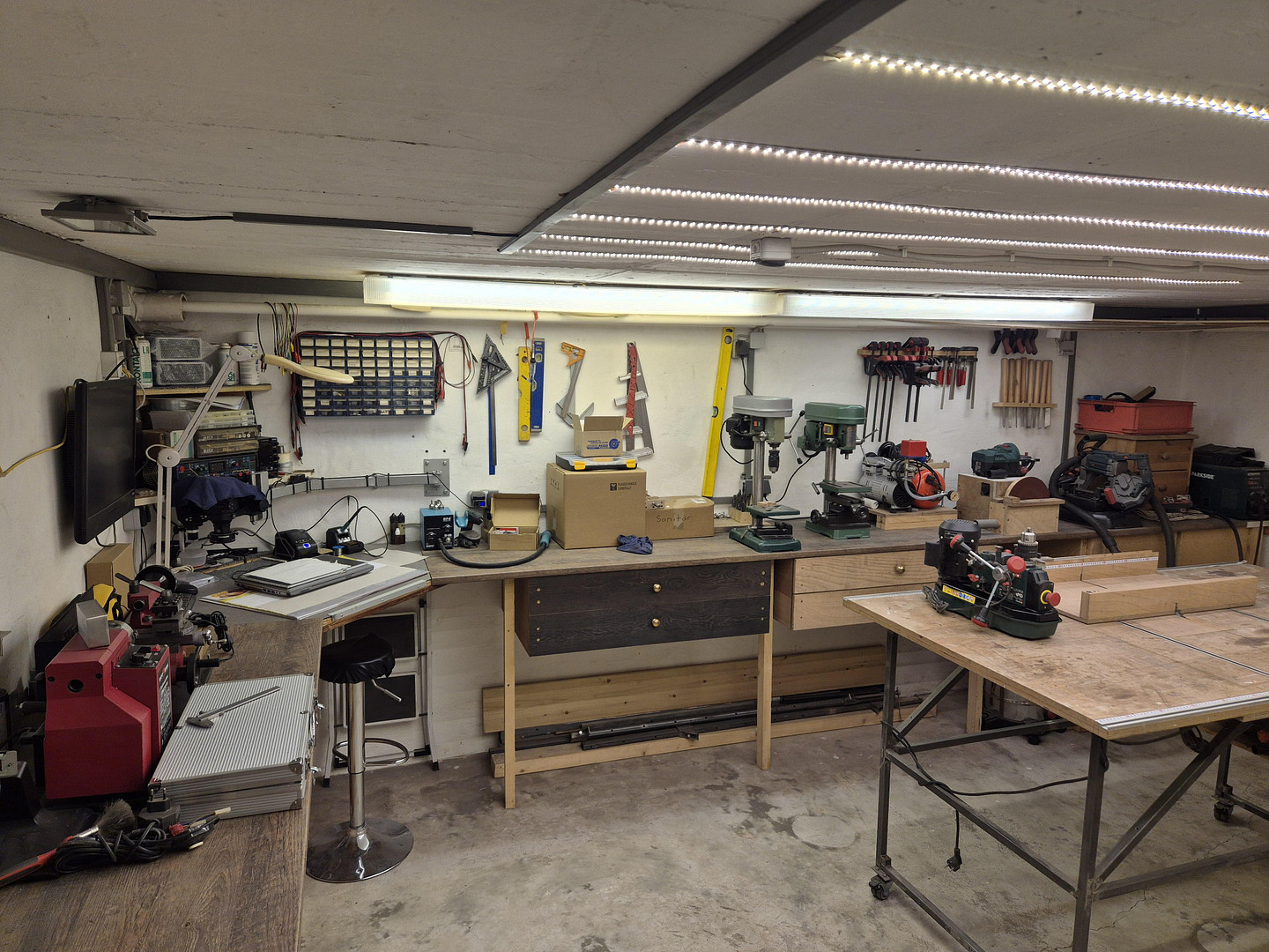 In the basement we find a small laundry room with toilet, as well as a party room and a workshop.