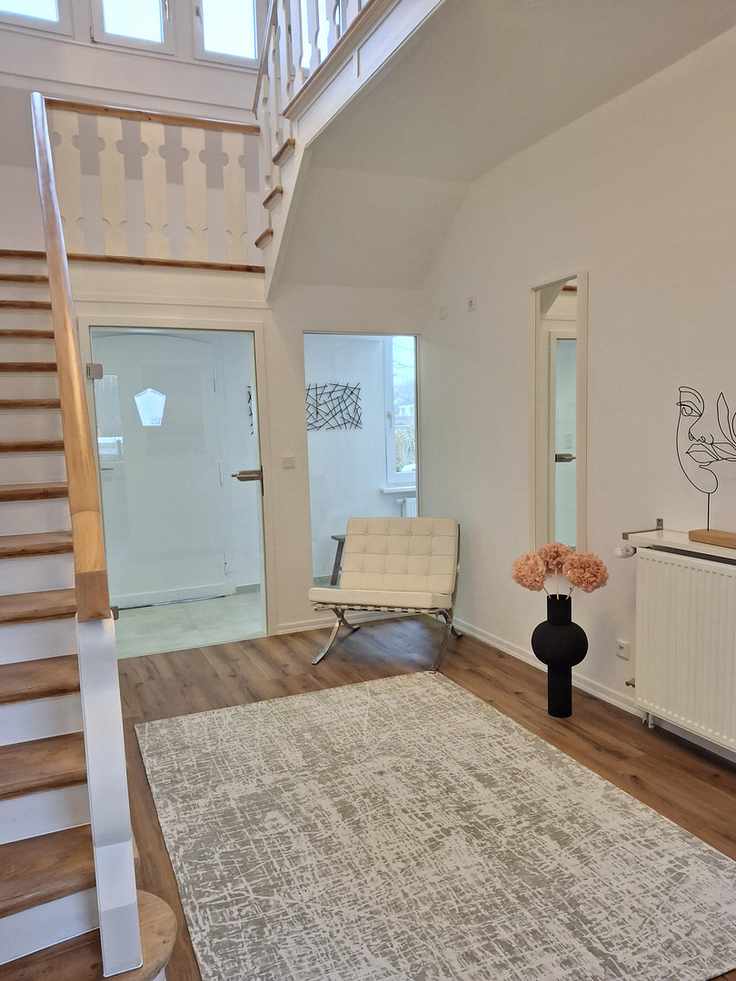 The house is located in the "back desert" with a friendly neighborhood and adjacent allotments. Here, children can grow up safely and experience nature, while at the same time you have all amenities within easy reach. Shopping facilities, doctors, pharmacies, kindergarten and schools are all within easy walking distance - ideal for families of all ages.