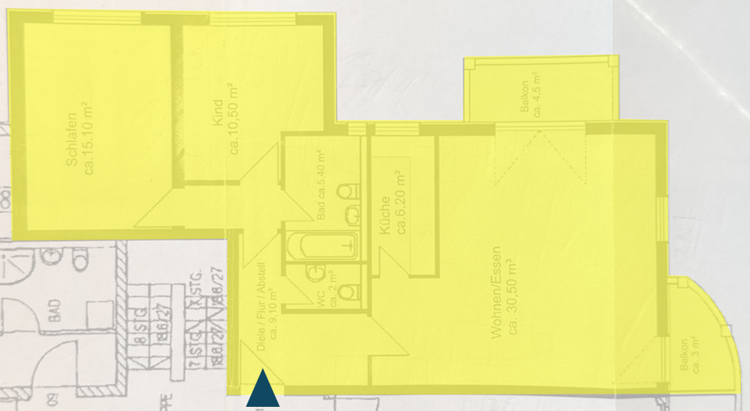 Oberhachingerstr. 17, 82031 Grünwald – BayernThe apartment impresses with its harmonious room layout: a bright living area, a well-designed bedroom, children's room or office and a separate bright kitchen offer a variety of uses. Bathroom with natural light and particularly practical, 2 toilets, one of which is kept separate.