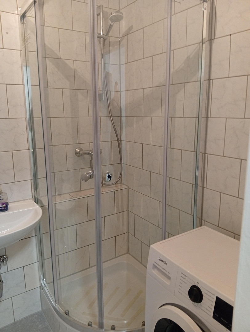 New light vinyl floor with footfall sound insulation. Completely new fitted kitchen included. Washing machine in modernized bathroom.