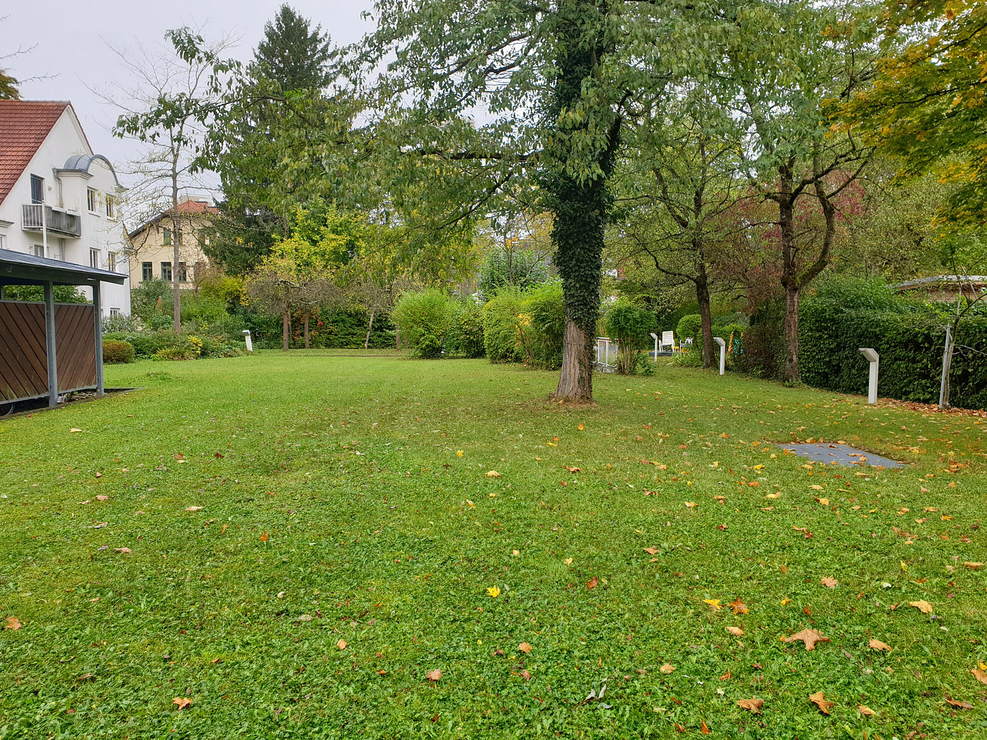 The residential complex includes a spacious park-like green area as well as covered and lockable areas for garbage cans and bicycles in the inner courtyard.