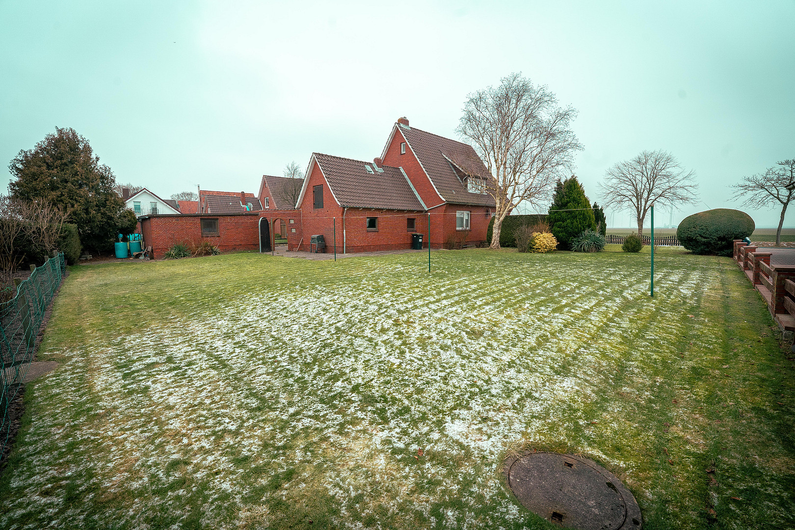 21734 Oederquart – NiedersachsenBuilt in 1963 with solid construction, this house offers approximately 108 m² of living space, distributed over two floors (ground floor and attic), and a total of 6 rooms. The robust construction provides a solid foundation and also offers ample space for personal design ideas. Modernization presents the opportunity to adapt the house to contemporary tastes. A particularly attractive feature is the option of a separate living unit in the attic, which would be ideal as a guest area, for growing children, or as a private retreat. The spacious garden offers a variety of possibilities for individual use and landscaping. The property is further enhanced by a garage and an adjacent outbuilding, which would be perfect as a workshop, utility, or storage space. This outbuilding offers extensive storage for garden equipment, bicycles, or seasonal items, and also includes its own attic, providing additional practical storage space. The house is fully basement, offering further storage and flexible usage options. Key features at a glance: • Quiet, rural location