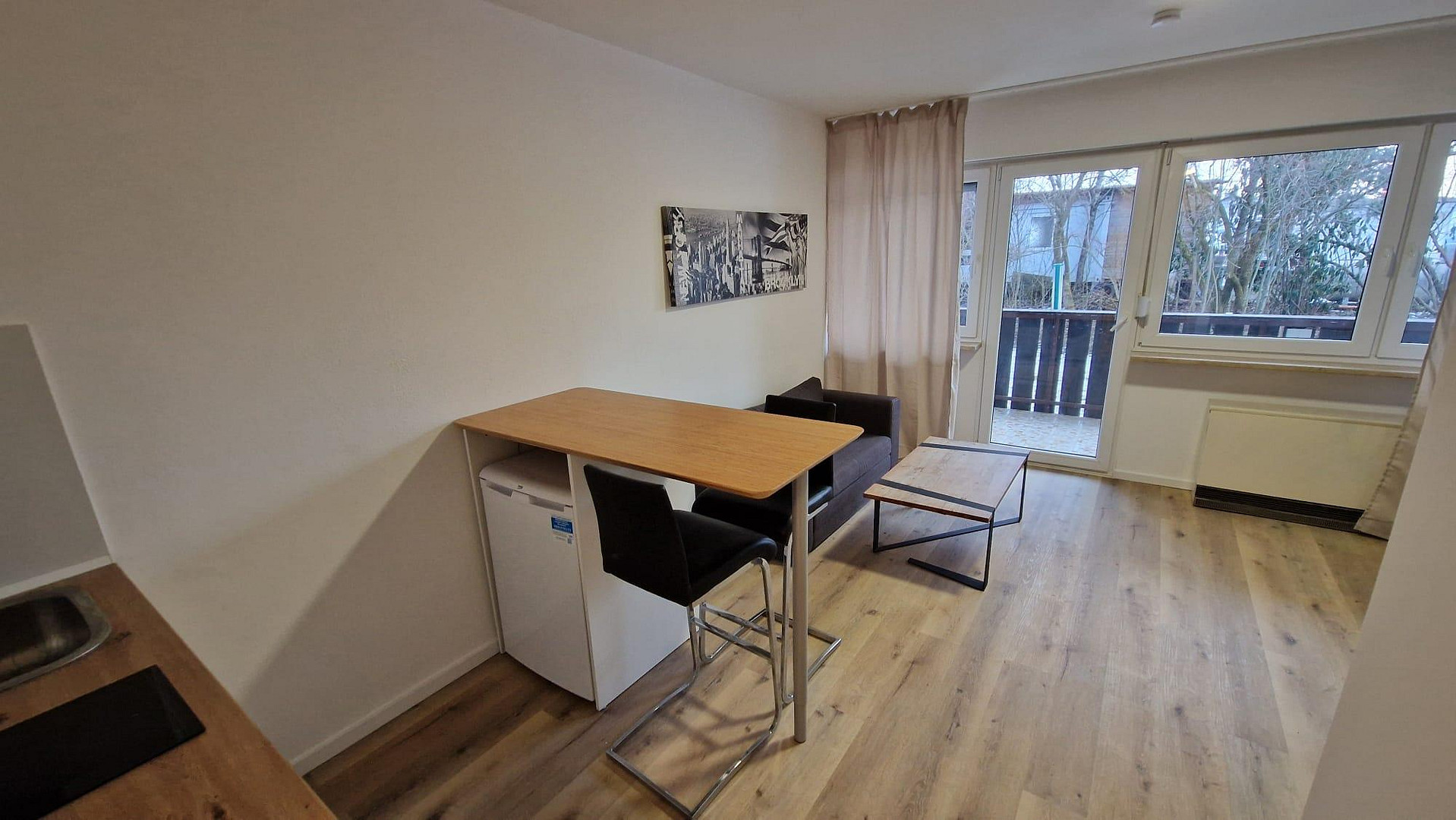 a 1-room apartment with balcony and EBK