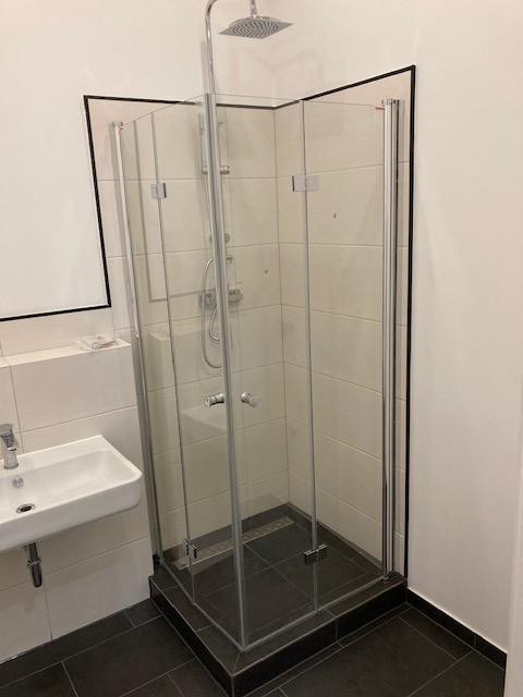 Weiherstr. 9, 90762 Fürth – BayernThis beautifully renovated 2-room apartment in an old building is a stone's throw from the Rednitz. This is ideal in summer, as a footbridge invites you to swim and cool off. The apartment was extensively renovated in 2022 and most recently refurbished. High ceilings with integrated spotlights create a unique sense of space. The bathroom with rainforest shower, washing machine connection, toilet, etc. is located between the living room and bedroom. The kitchen was cleverly built into an alcove with a window.