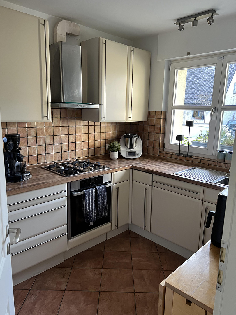 The basement has a large room with its own garden access, window and heating, which we use as a second office. Additional storage space was created with a simple partition wall. The basement also has a storage room, a laundry room (incl. shower) and a small boiler room. The fiber optic connection has already been installed.