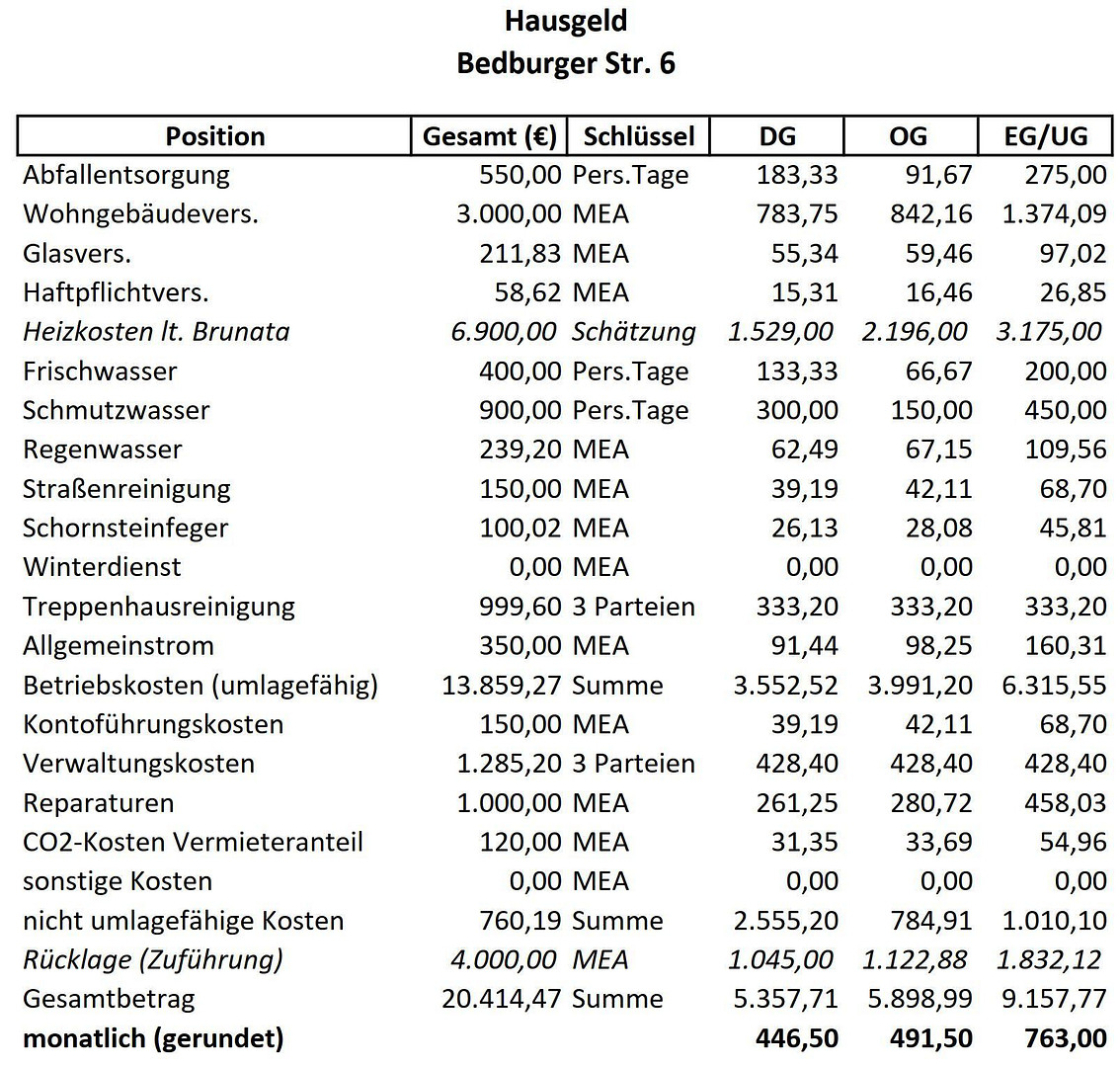 The apartment also includes two separate storage rooms in the basement. The small homeowners' association is currently being reorganized: Currently, a reserve fund is being professionally established (as many things were previously handled informally). In addition, there is still real potential for savings on the general electricity and gas costs by switching to more affordable, modern tariffs.