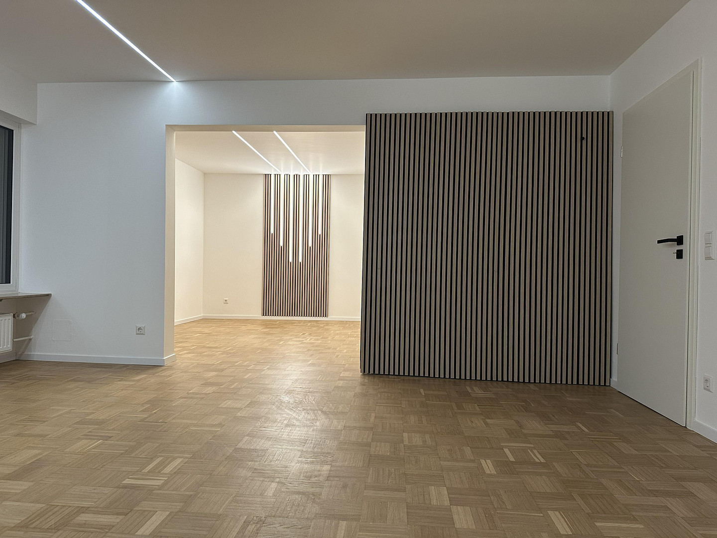 New walls give the apartment a brand new look. Only high-quality silicate paint was used. Your advantage: This paint is highly breathable ("the walls breathe"), helps regulate humidity, and naturally prevents mold. It is solvent-free and therefore ideal for allergy sufferers. All radiators have been replaced. All doors are new, including a space-saving designer sliding door. Outdoor area & extras: