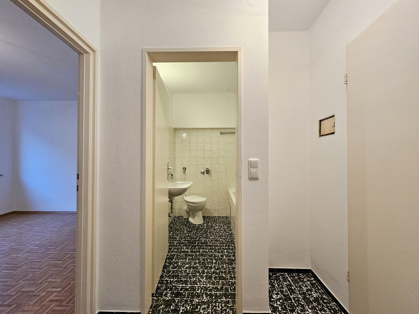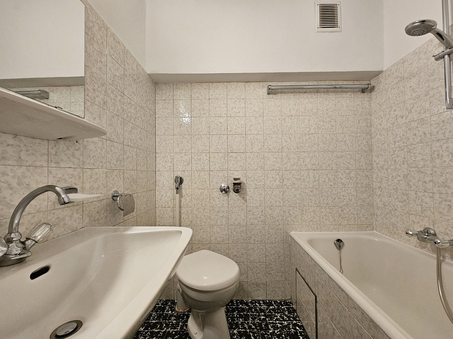 In the bathroom there is a bathtub as well as a WC and washbasin. There is NO space for a washing machine in the apartment. However, you could use the washing machines with money slot in the cellar.