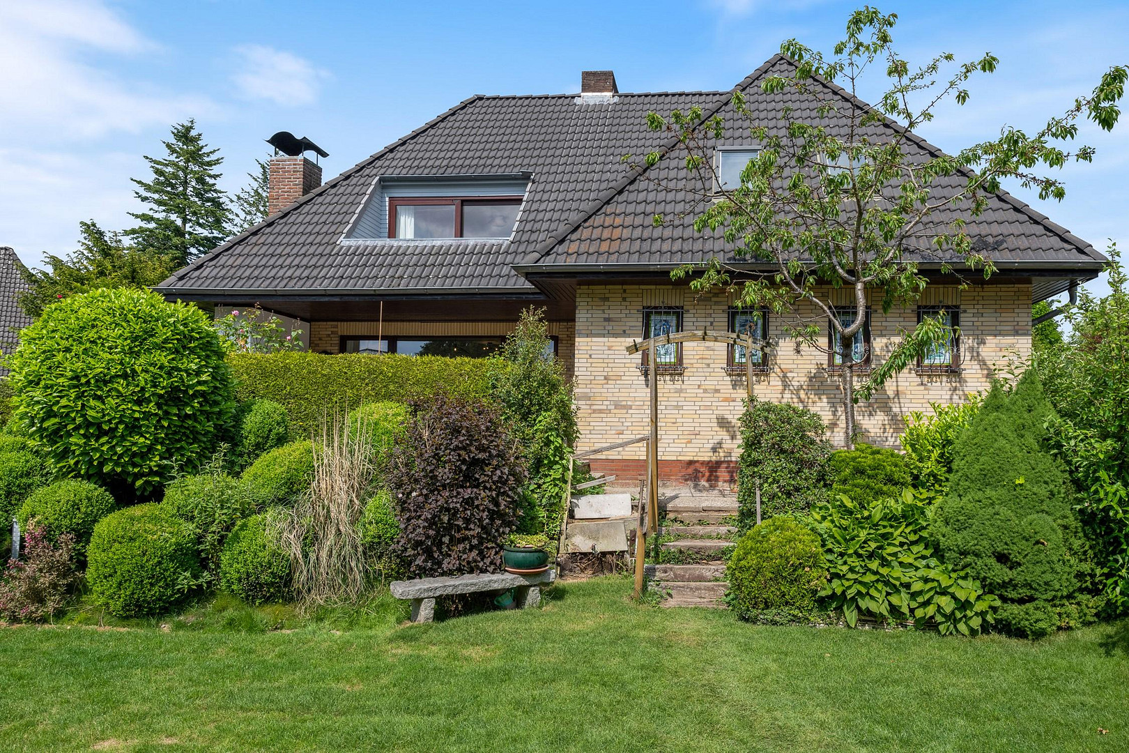This gem is located in a quiet residential area of Rissen, not far from the popular local recreation area "Klövensteen". The banks of the Elbe can be reached by bike in 10 minutes. All amenities for daily needs are within walking distance and the S-Bahn takes you quickly and comfortably to Hamburg city center.