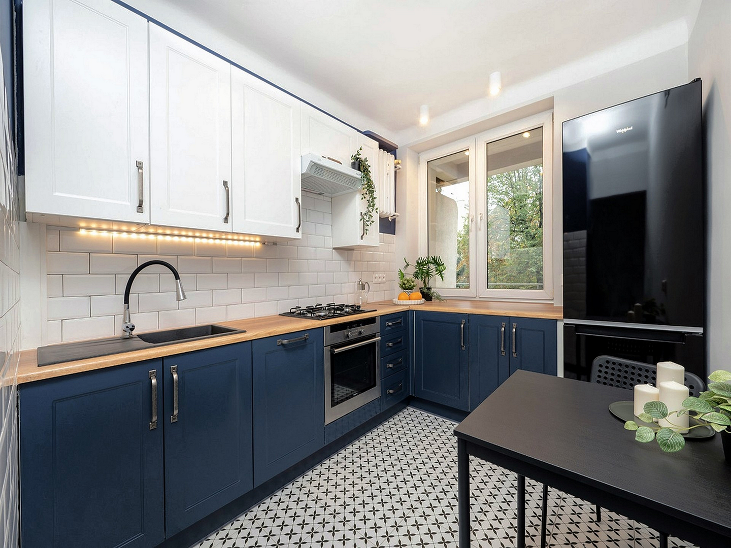 Fully equipped kitchen (included in the rent): Modern and energy-efficient fitted kitchen with high-quality electrical appliances, refrigerator with freezer compartment, stove, oven, dishwasher and space for washing machine)