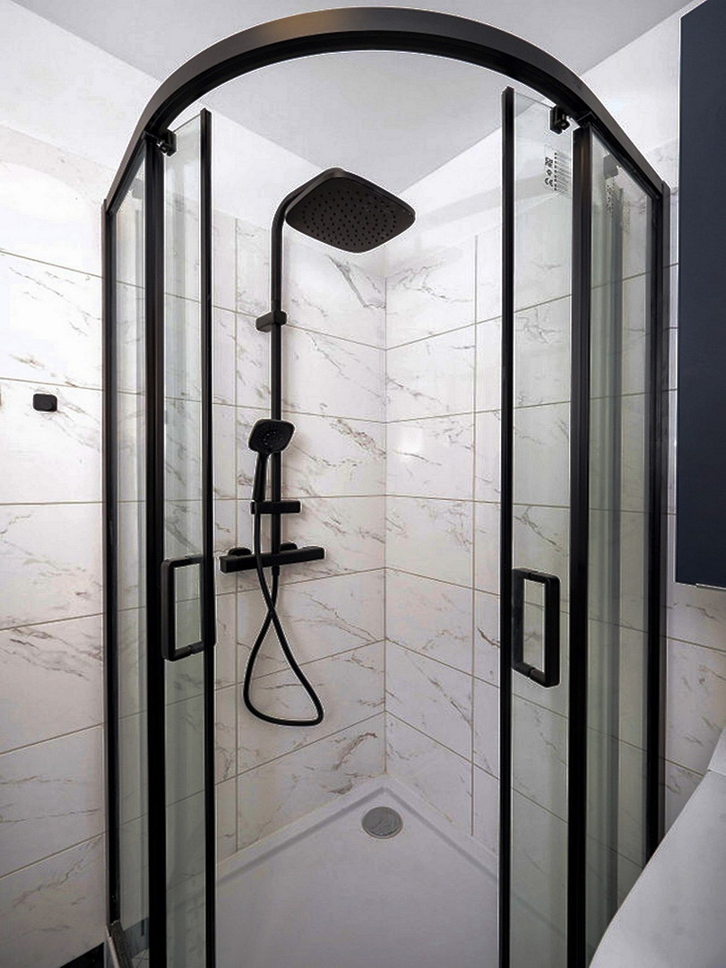 Completely renovated bathroom with quadrant shower with glass partition