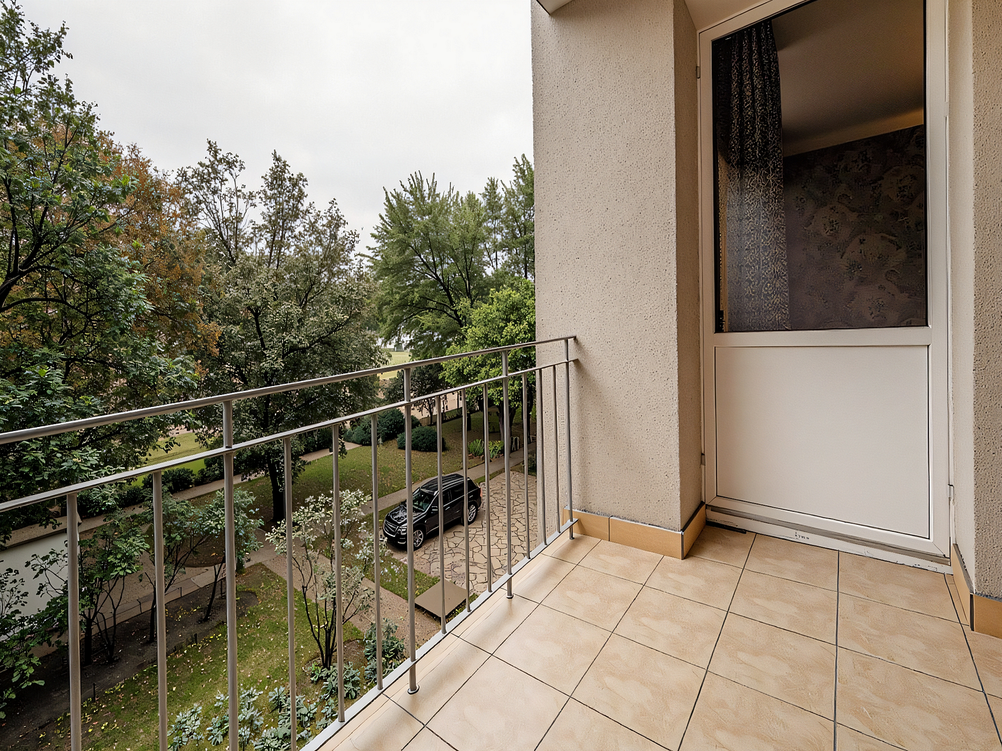 The premises consist of a kitchen, living room, bedroom, bathroom and hallway. There is also access to the balcony from the living room. The apartment is in a very quiet location. The balcony and all windows overlook a spacious, fenced-in green area with numerous old trees. The rooms are very well lit thanks to the south-east orientation of the windows.