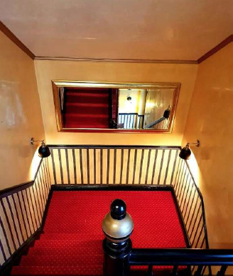 * Ornate plasterwork, paneling, and classic Art Nouveau details