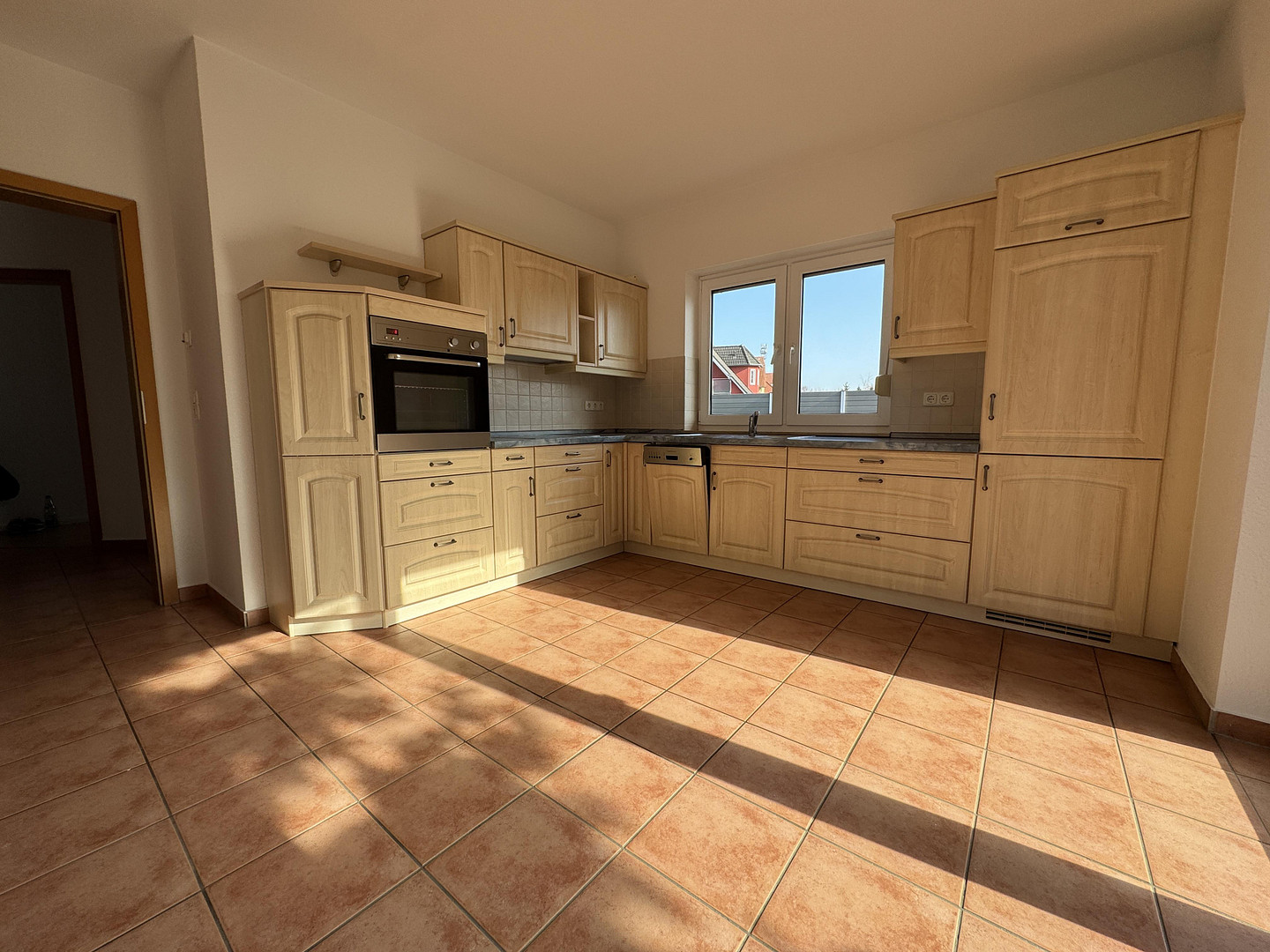 • Laminate flooring, tiled flooring, corner bathtub, fitted kitchen, television connection possible via satellite system.