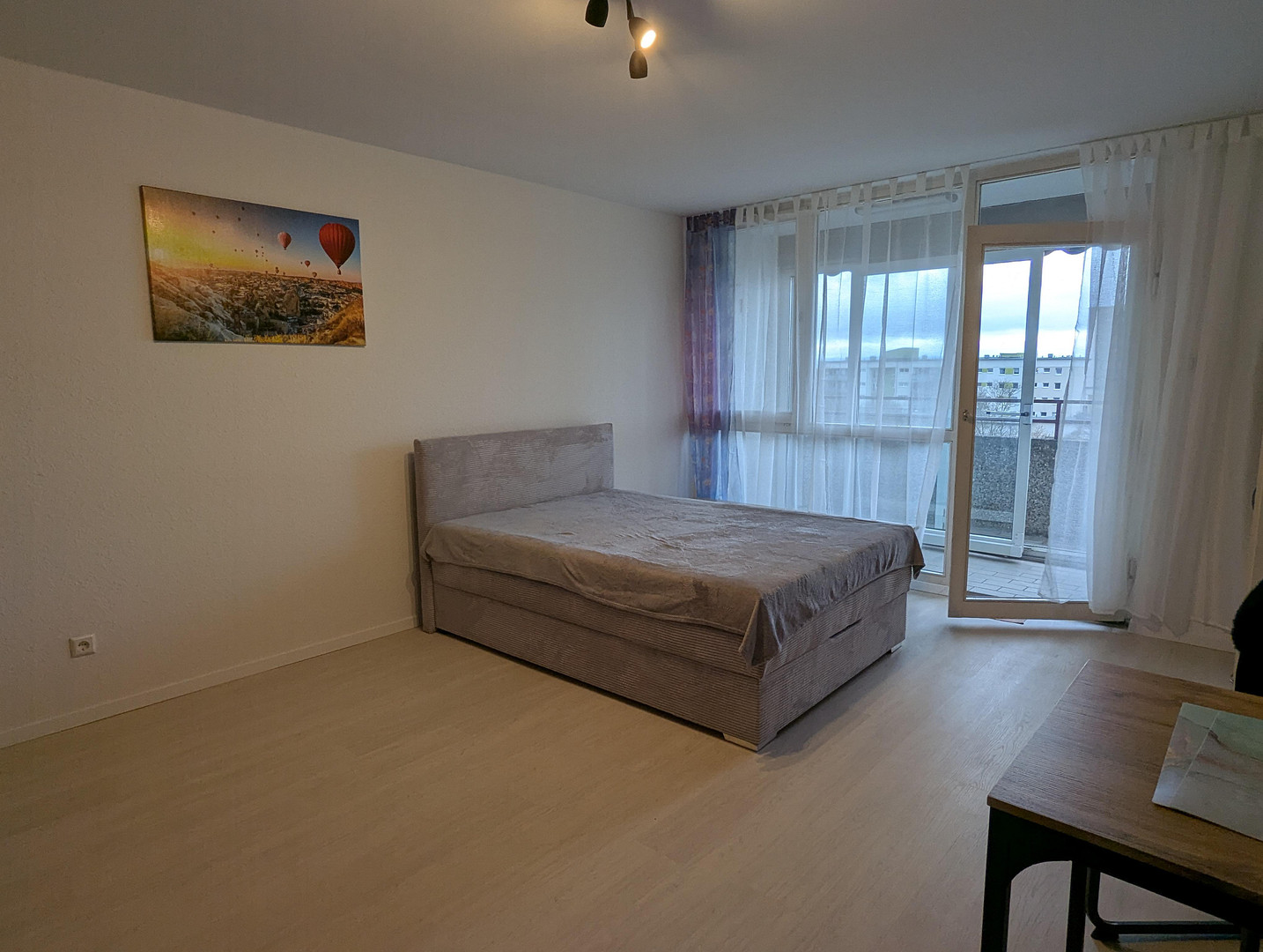 The furniture (kitchen with appliances, Miele washing machine, box spring bed, table, chairs) is included with the apartment and is factored into the price of €5,000.