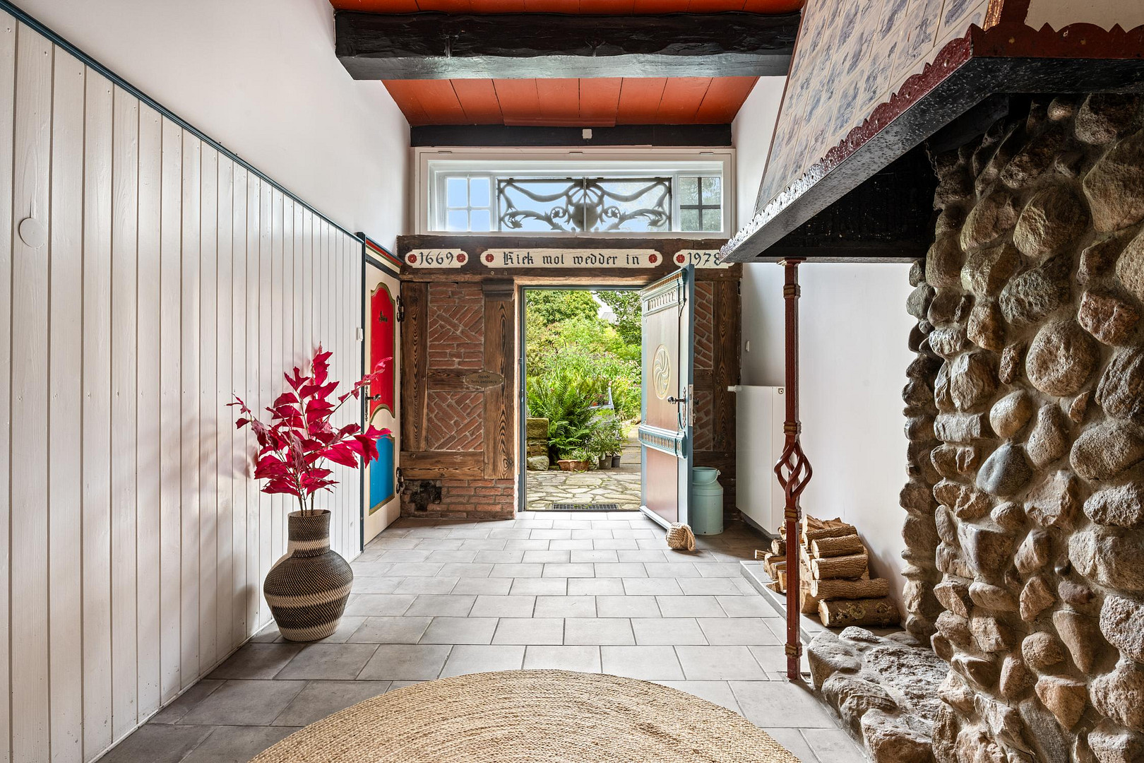 • Historic details: Exposed wooden beams, original floors, and warm wooden planks characterize the entire house.