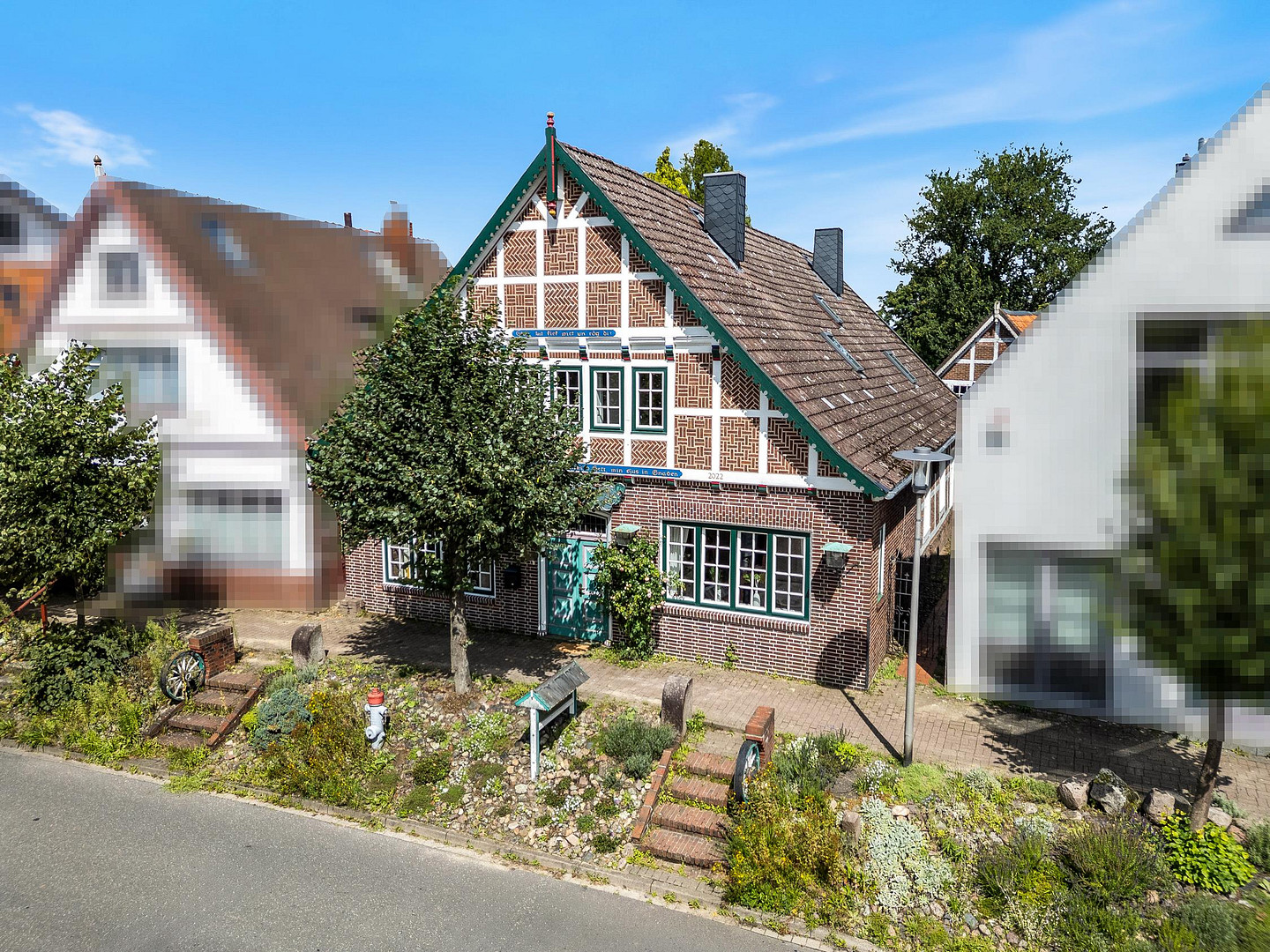 The house is located in the idyllic village of Estebrügge, a district of the municipality of Jork, surrounded by the fruit orchards of the "Altes Land" region. The charming surroundings combine rural tranquility with excellent accessibility: Jork and Buxtehude are just a few minutes away, and Hamburg can be reached comfortably in about 45 minutes.