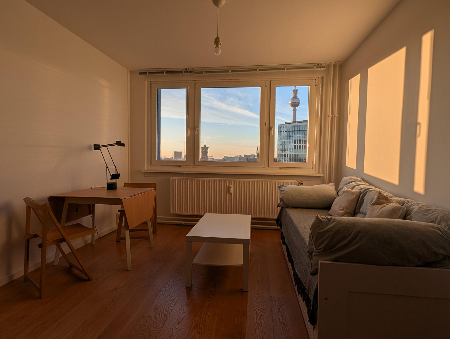 In conclusion: A practical apartment in a prime location, offering views over the rooftops of Berlin-Mitte, with low running costs – and no commission. The apartment can be purchased furnished, if desired.