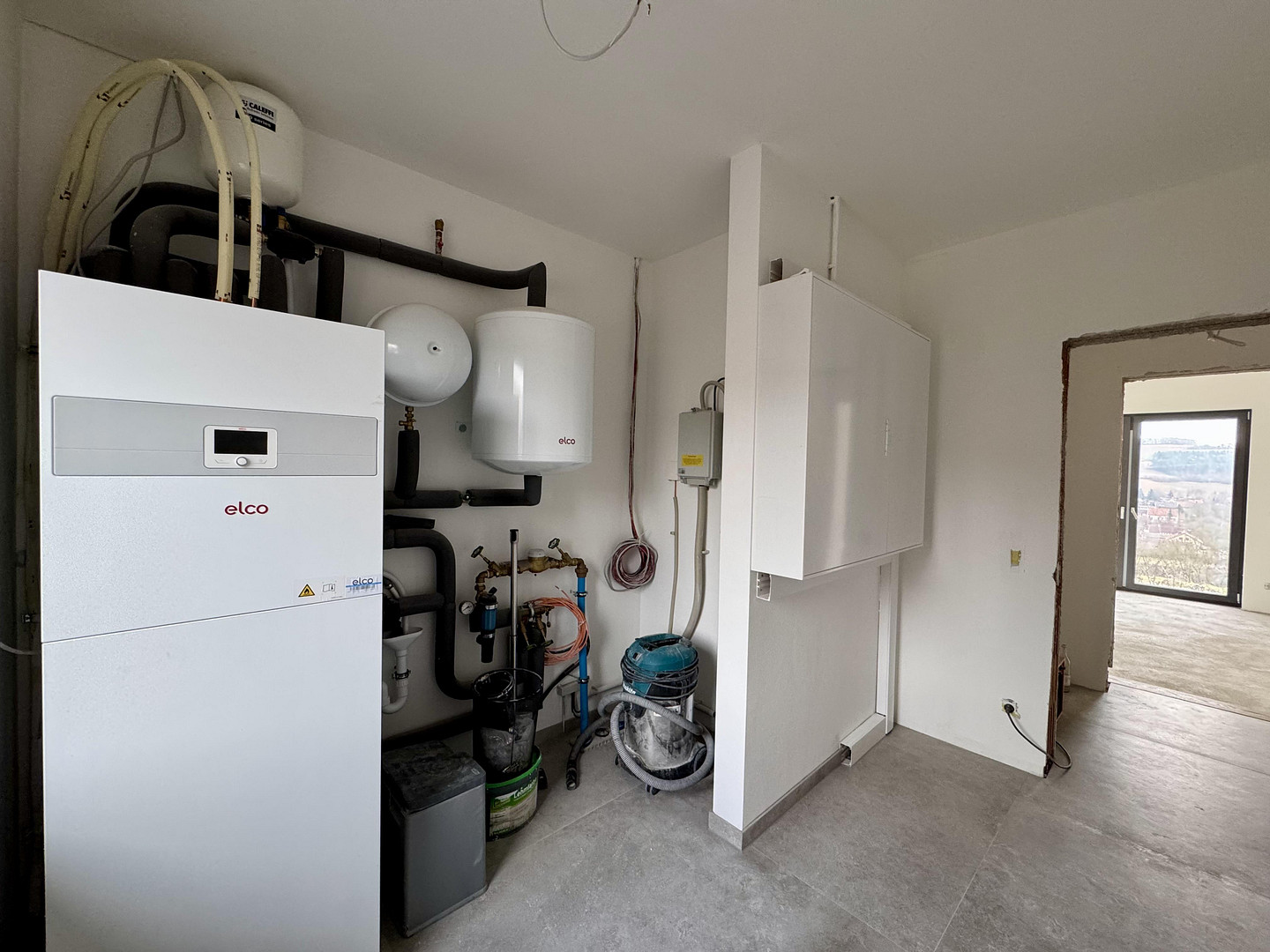 ELCO air source heat pump with digitally controlled underfloor heating.