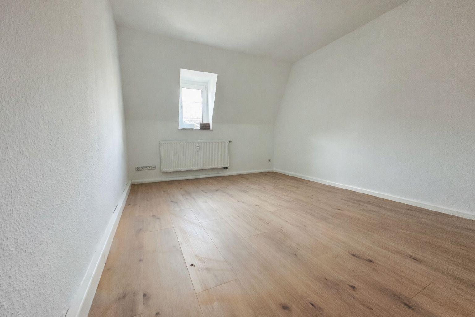 Äußere Crimmitschauer Straße 33, 08393 Meerane – SachsenWelcome to your new home. This high-quality renovated 3-room apartment is located on the top floor of a well-maintained apartment building with only three units, situated at Äußere Chemnitzer Straße 33 in Meera. With approximately 71 square meters of living space, the apartment offers a well-thought-out layout, bright rooms, and modern features. A particularly noteworthy aspect is the approximately 1.20-meter high "knee wall" – a significant advantage over traditional attic apartments. This creates excellent space for furniture arrangement and a spacious feel, despite being located under the roof.