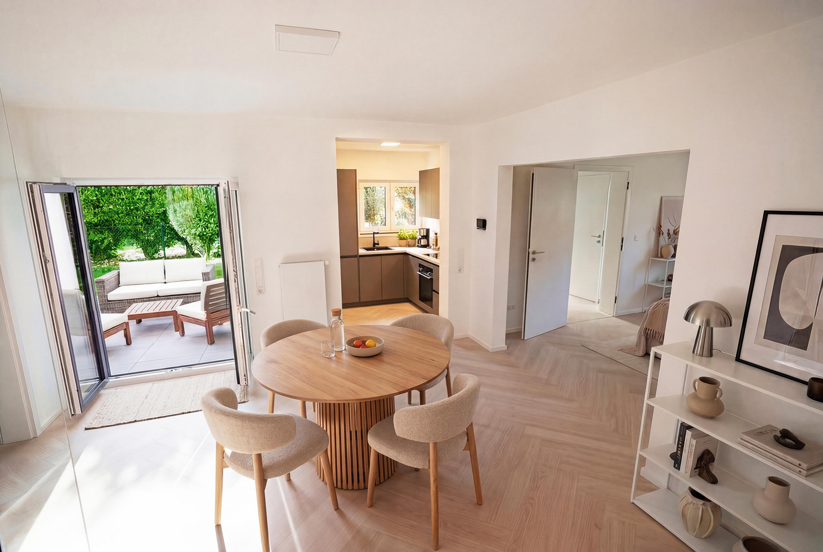 • Complete renovation of the ground floor + extension/new construction of the 1st floor (luxurious) with a green roof (to be completed in 2026).