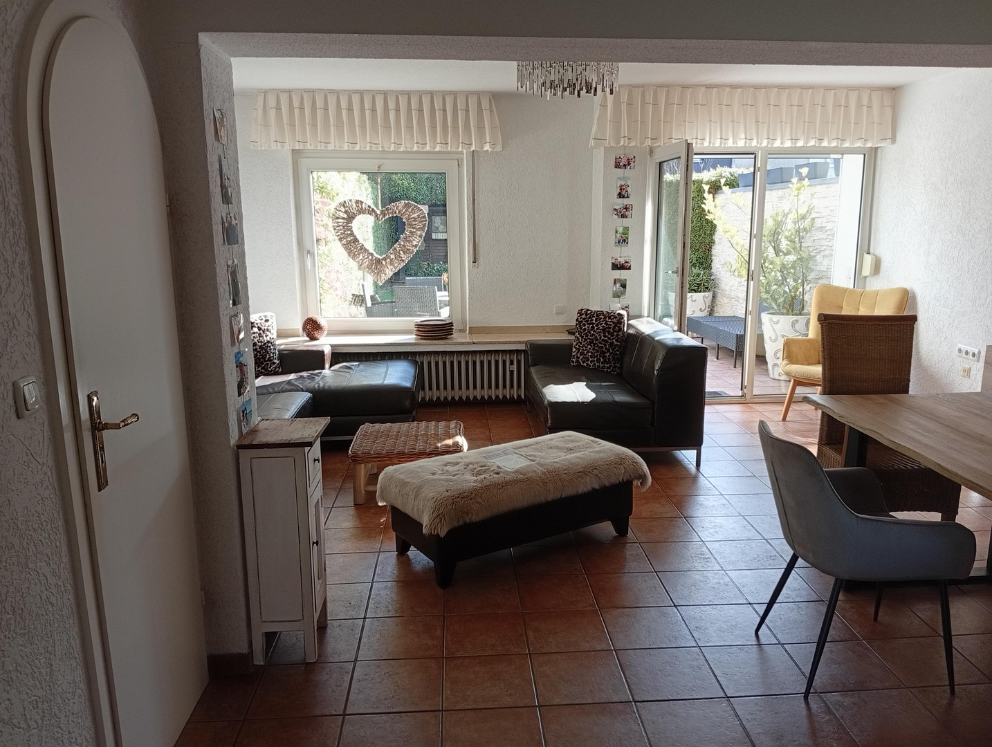 45475 Mülheim an der Ruhr (Dümpten) – Nordrhein-WestfalenThis terraced house, built in 1962, is located on a quiet, well-maintained street surrounded by nature, making it ideal for families. Spread over one floor, it offers 4.5 rooms, providing a perfect foundation for your new home. The stated living area is approximately 120 m², comprising approximately 95 m² of living space within the house and approximately 25 m² of terrace area. In addition, there is a large basement room of approximately 30 m² that can be used as a bar, hobby room, or playroom. The attractive property is approximately 180 m² in size and enjoys a prime south-facing orientation. Upon entering the house, you are greeted by a welcoming entrance area that immediately creates a sense of home. On the ground floor, from the hallway, you can access a guest toilet with Mediterranean-style tiling and a window, and the open-plan kitchen/living room, which offers views of the garden and a dining area perfect for relaxing in a pleasant atmosphere. From the living/dining room, you can access the garden, which enjoys a sunny south-facing orientation. The garden is equipped with a large jacuzzi and a separate outdoor shower. There is also a beautiful garden shed for storing various gardening tools. Upstairs, you will find a bright bathroom with a shower, as well as two children's/study rooms and a master bedroom. The beautiful garden is a true highlight: featuring a large terrace, a solidly built garden house, mature trees, and guaranteed sunshine all around. Here, you can enjoy relaxing hours outdoors in the greenery, whether it's breakfast in the summer or a cozy barbecue evening. The basement level offers a laundry/heating room, a guest toilet, and a bar/hobby/games room – ideal for social gatherings. Outside, under the staircase, there's a bicycle garage/workshop equipped with a secure electric roller door. Each floor has its own bathroom or toilet! We look forward to receiving your detailed private viewing request by email. !!!Please, no real estate agents or inquiries for mediation services!!!
